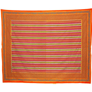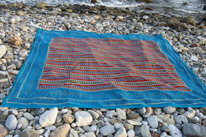 Tela de algodon India realizada artesanalmete con colores naturales y dibujos étnicos.Se puede utilizar como tela decorativa, colcha, etc.Producto de gran calidad.