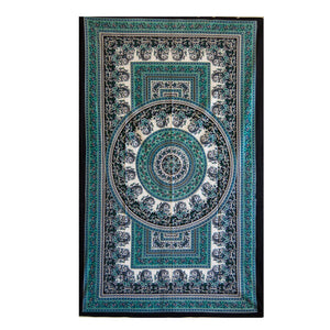 Tela de algodon India realizada artesanalmete con colores naturales y dibujos étnicos.Se puede utilizar como tela decorativa, colcha, etc.Producto de gran calidad.