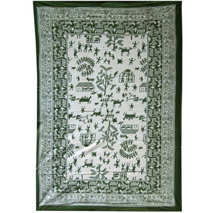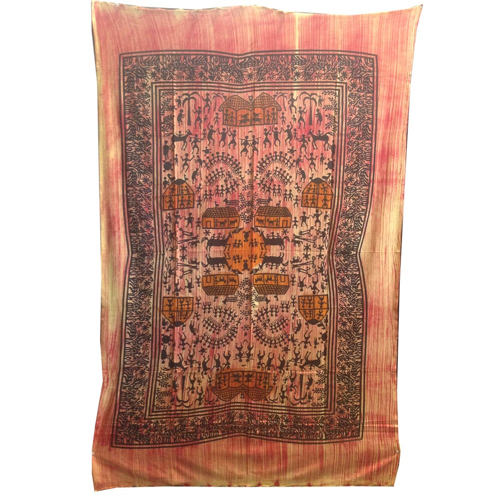 Tela de algodón India realizada artesanalmente con colores naturales y dibujos étnicos.Se puede utilizar como tela decorativa, colcha, etc.