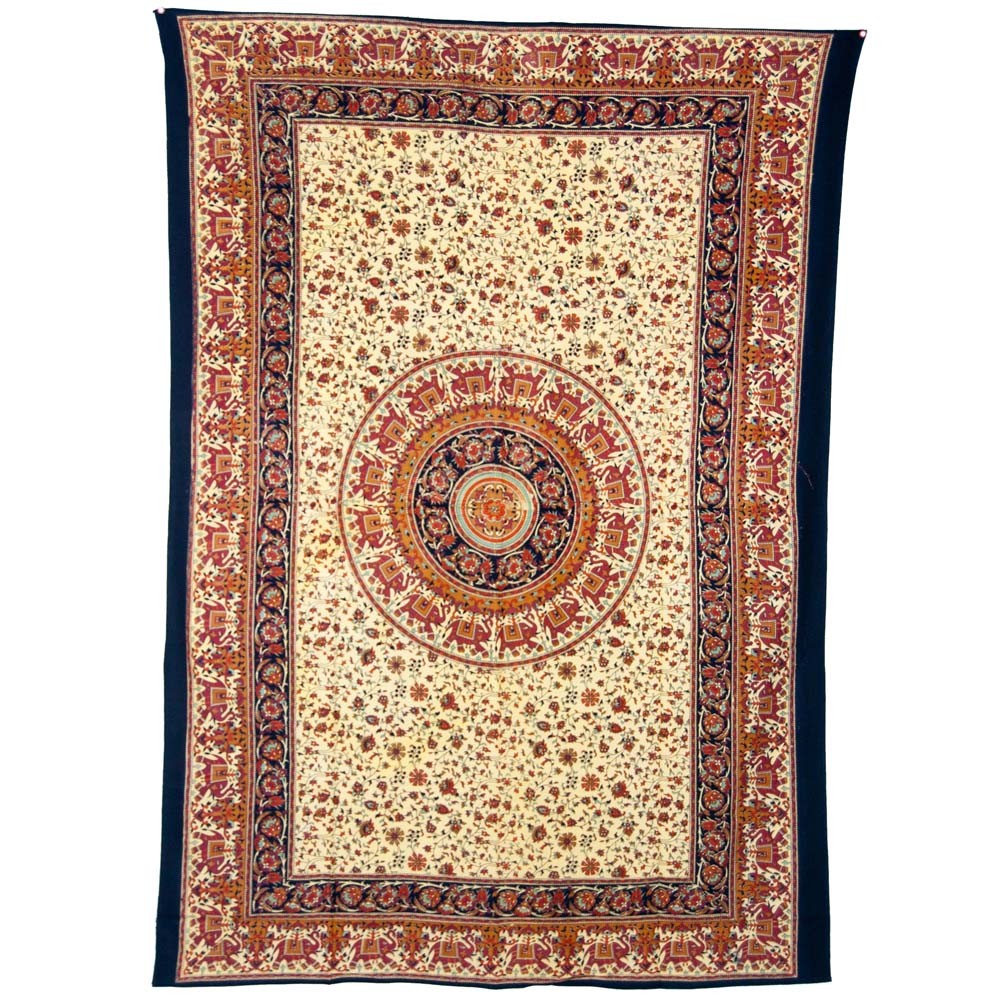 Tela de algodón India realizada artesanalmente con colores naturales y dibujos étnicos.Se puede utilizar como tela decorativa, colcha, etc.Producto de gran calidad.