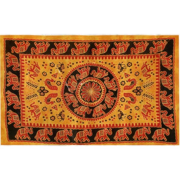 Tela de algodon India realizada artesanalmete con colores naturales y dibujos étnicos.Se puede utilizar como tela decorativa, colcha, etc.Producto de gran calidad.