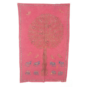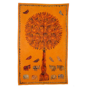 Tela árbol de la vida realizada artesanalmente en algodón con técnica rústica de relieves de tela.