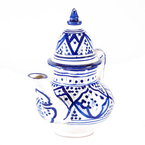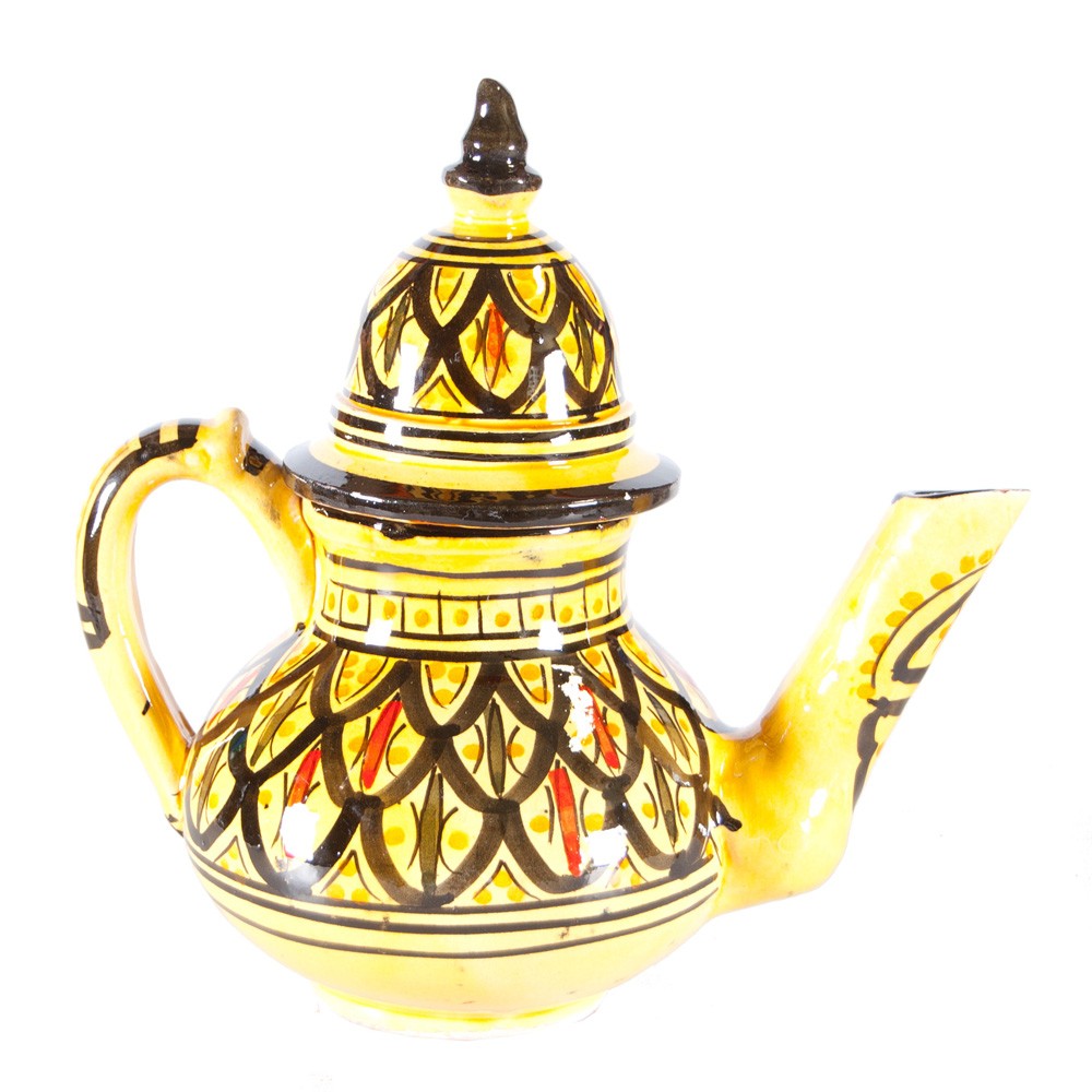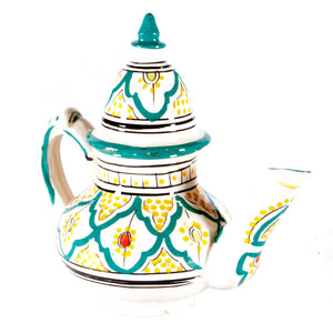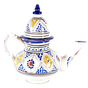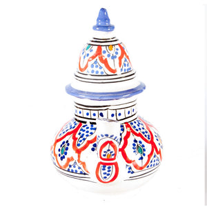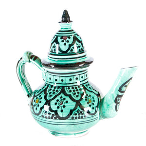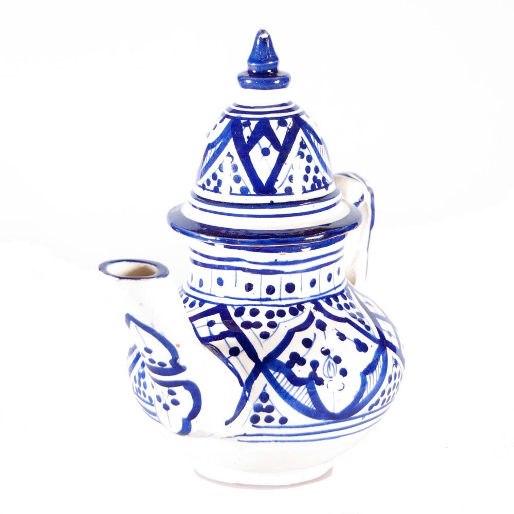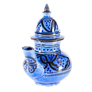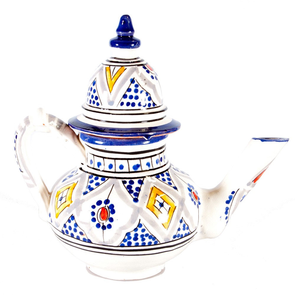Tetera árabe de cerámica realizada artesanalmente y pintada a mano con diseños andalusíes.