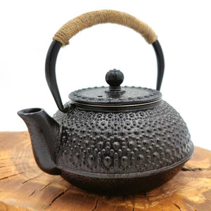 Tetera de hierro fundido de tradicional estilo japonés en color negra.
