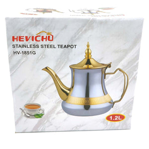Tetera Inducción Acero Inoxidable Estilo Árabe Dorado y Plateado Modelo Hevicho