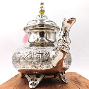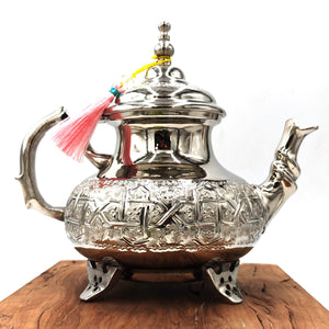 Descubre nuestra tetera marroquí de alpaca, elaborada artesanalmente en Marruecos. Con patas y capacidad de 1500 ml, es perfecta para disfrutar de un auténtico té moruno.