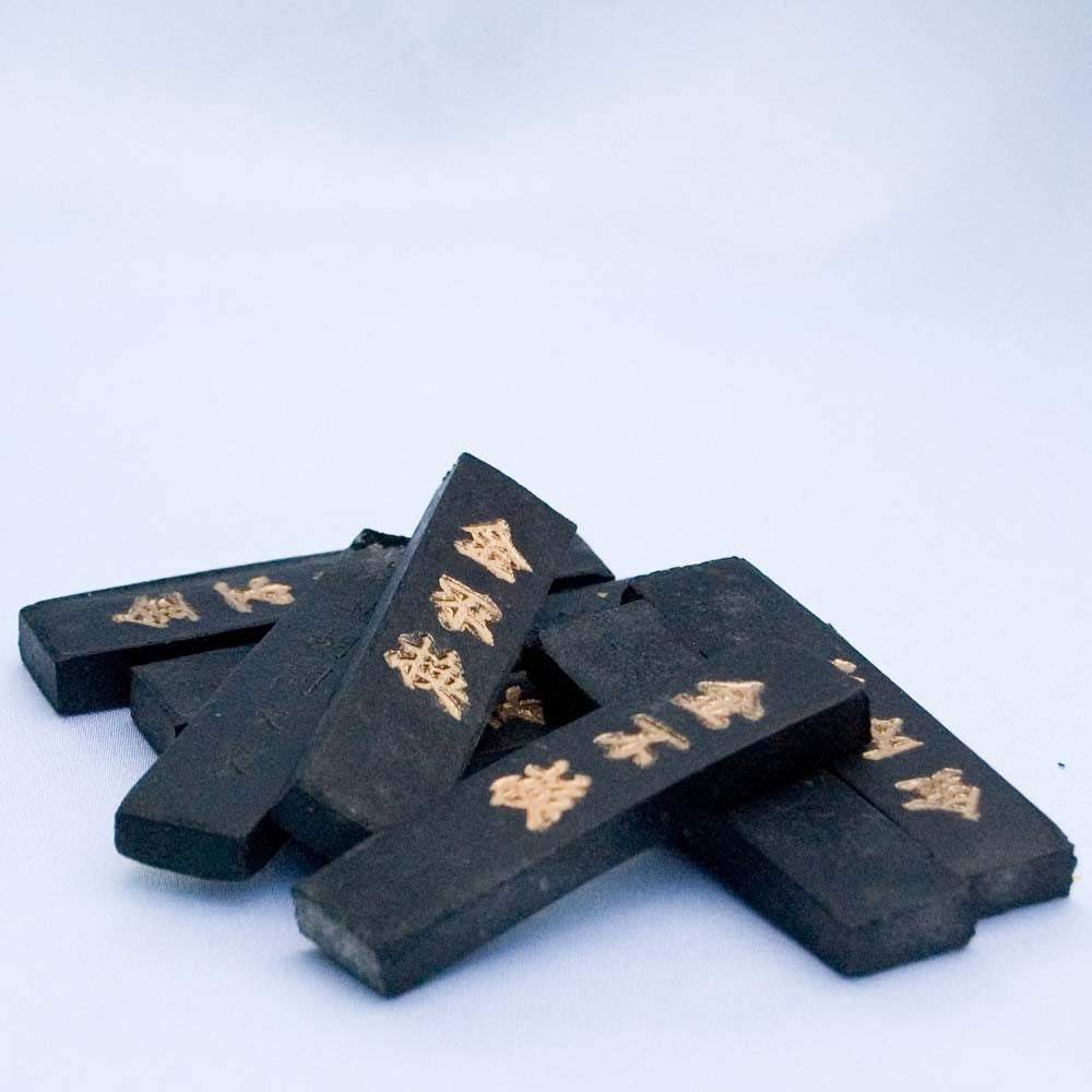 Tinta china para escritura en papel. Formato barrita. Para su uso en un pequeño recipiente ponemos tanta agua como tinta deseamos hacer (recomendados hacer una prueba con muy poquita) y dejamos las barrita a remojo un rato hasta que adquiera la