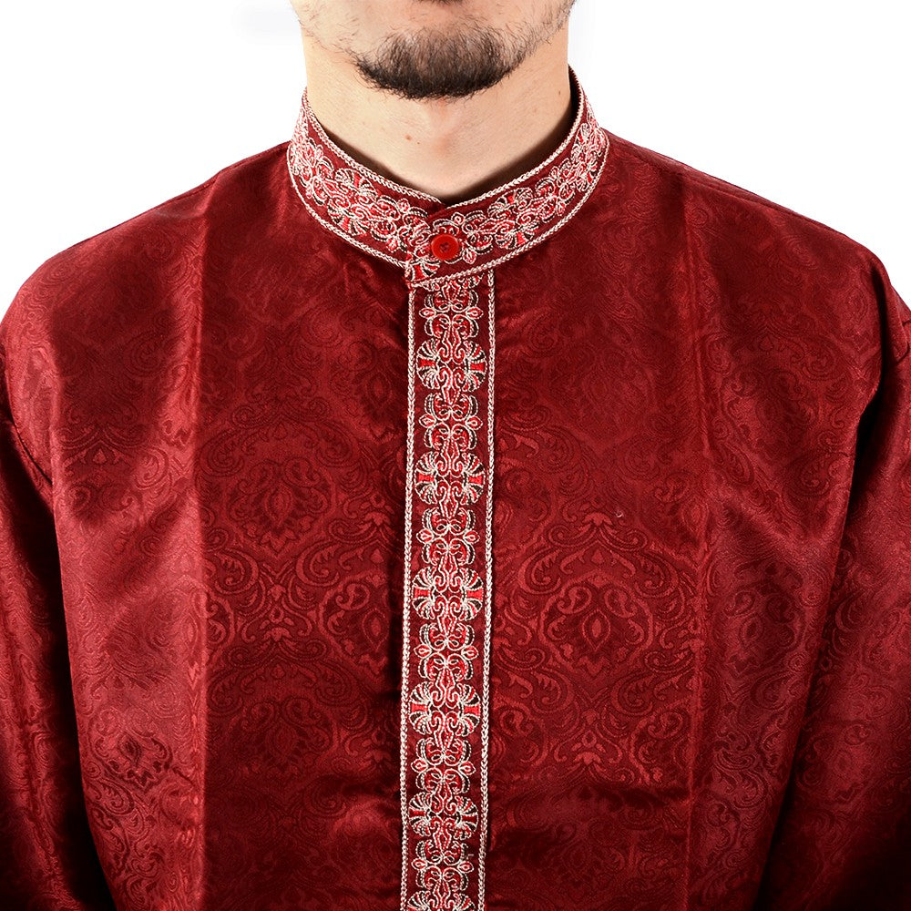 Magnífico traje hindú compuesto por caftán y pantalón,la combinación de los colores granate y blanco otorgan a aquel que lo vista una clase e estilo inigualables.