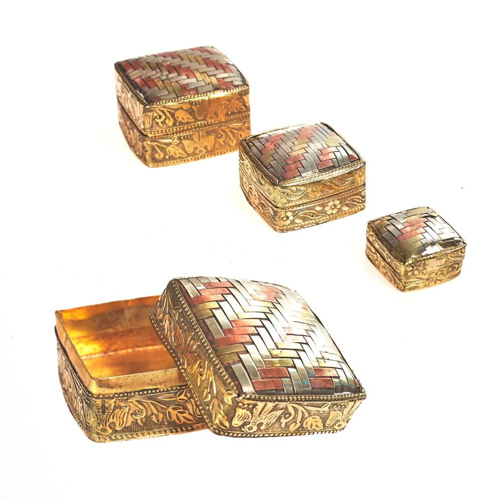 Tres Cajitas Bronce y Alpaca Trenzado - Modelo Cuadrado