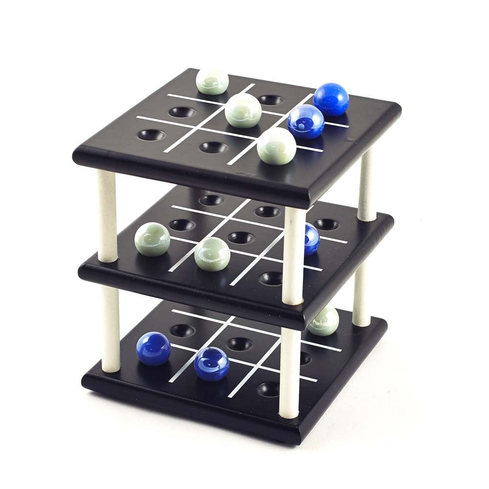 Clásico juego tres en raya pero ahora en 3D por lo que se podrán hacer muchas más combinaciones y tendrás que estar más atento.Muy divertido. Realmente original. Medidas: 12 x 11 x 11 cm