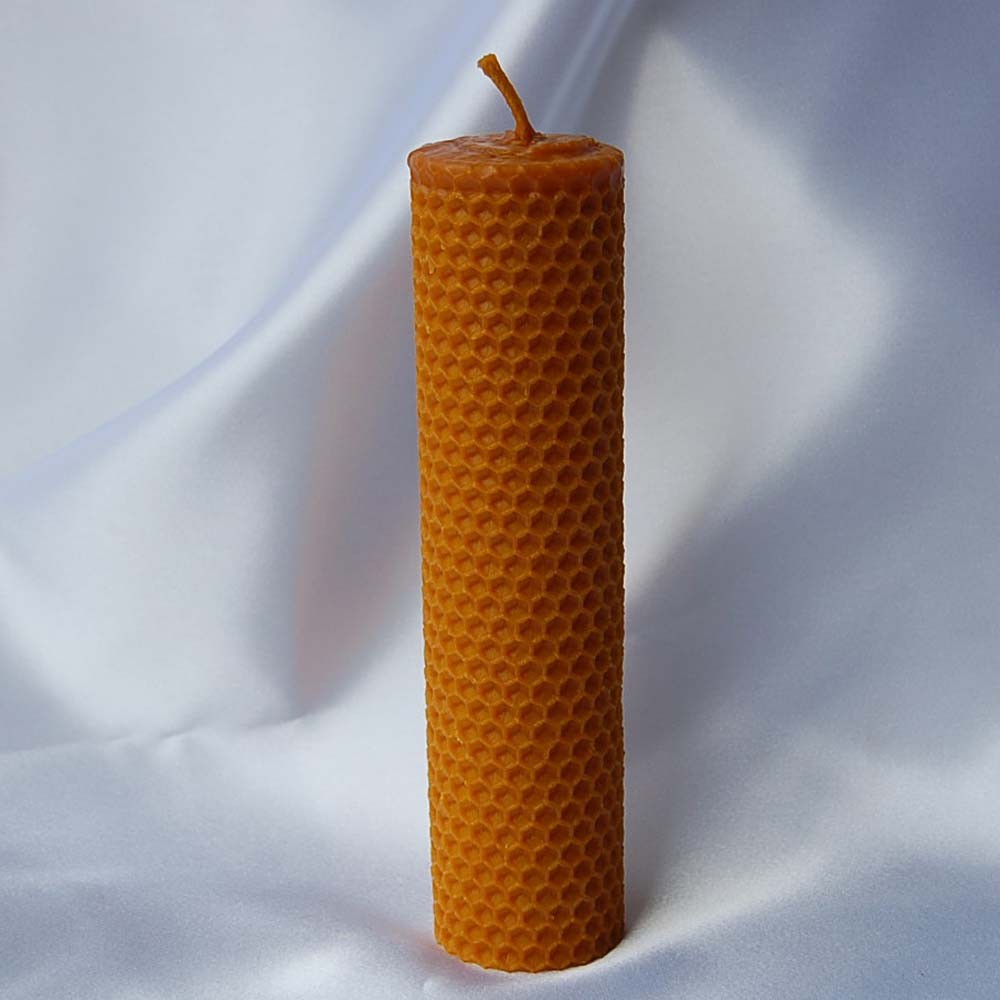 Vela artesana hecha con paneles de cera virgen de abeja.