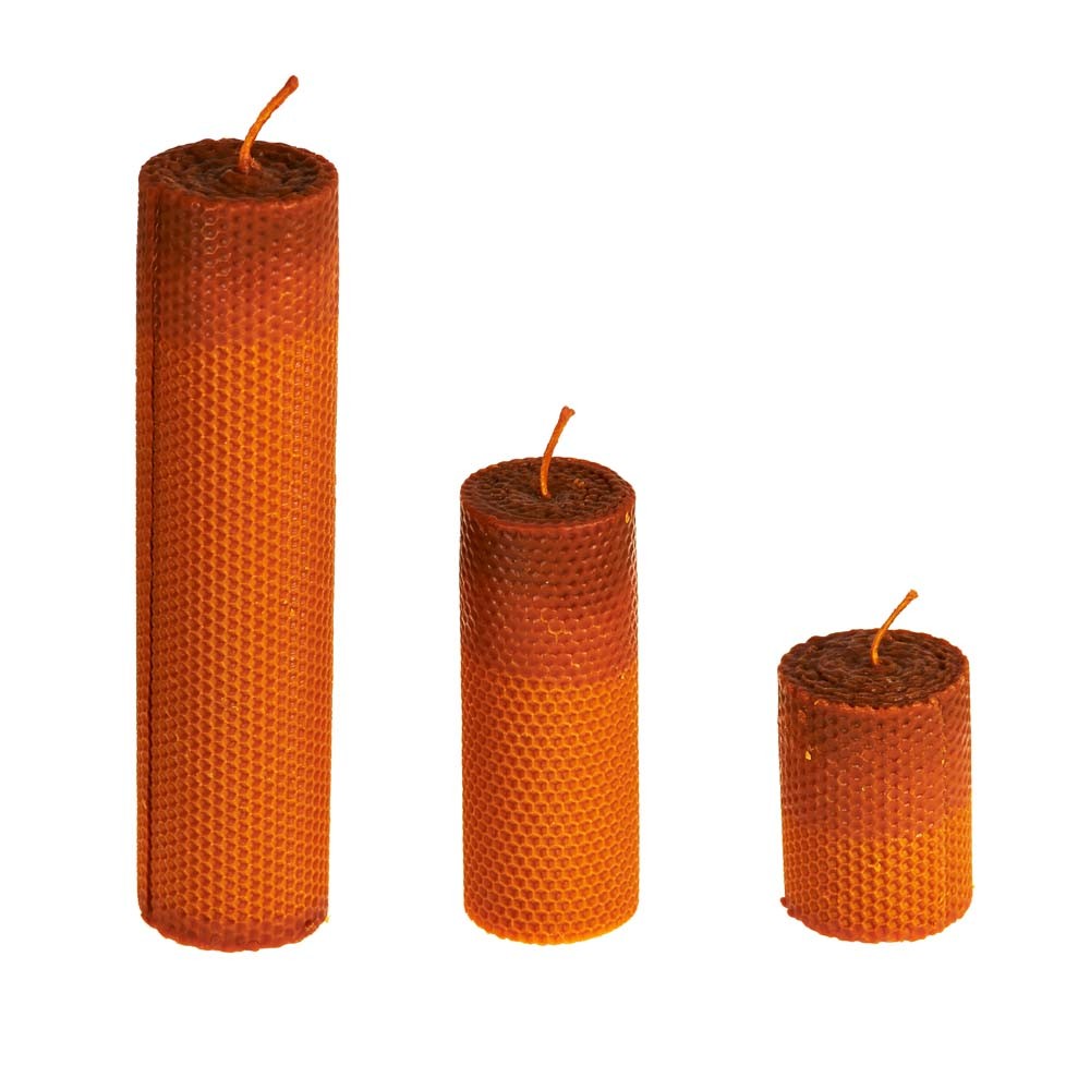 Velón de cera natural realizada artesanalmente con paneles de cera de abeja virgen.Mecha bañada en cera para una quema mejor.Muy bonitas y de agradable olor natural.Ideal para regalo.Diámetro de 7 cm y disponible en 3 tamaños:Pequeña: 9 cm